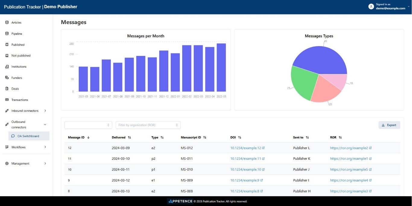 The Royal Society of Chemistry (RSC) was among the early participants of the OA Switchboard (OAS). Appetence assisted RSC in their integration with the OAS by deploying a set of Custom Connectors. Subsequently, we expanded this integration by introducing a Private Datastore and upgrading this to the Publication Tracker Tool. Currently, we are actively engaged in enhancing the integration by linking with their backend systems, including license and payment management, as well as reporting tools.